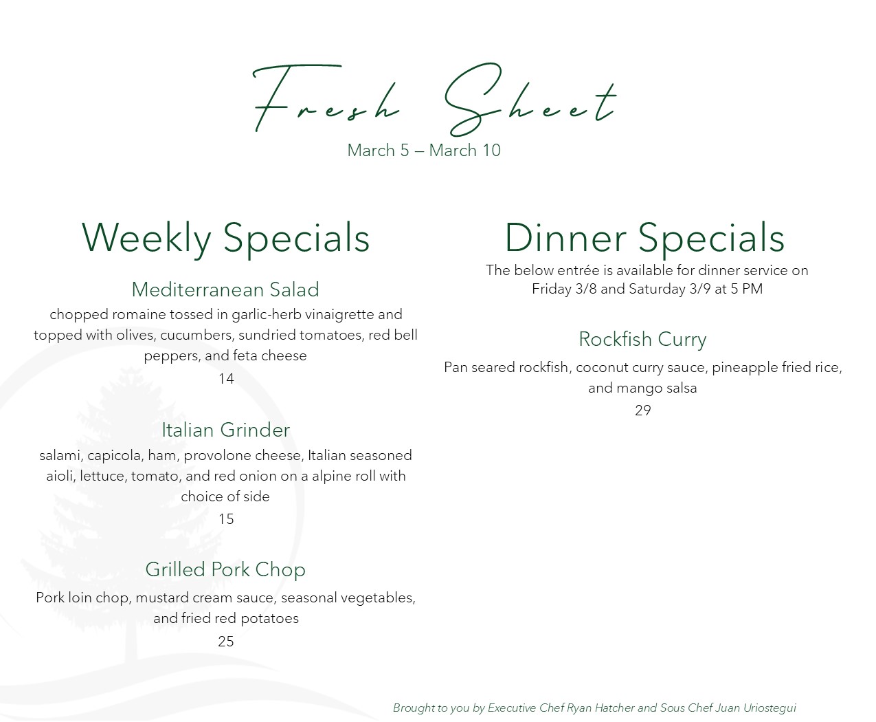 Dining at Fairwood Golf & Country Club *Hours may be affected by special/private events.
